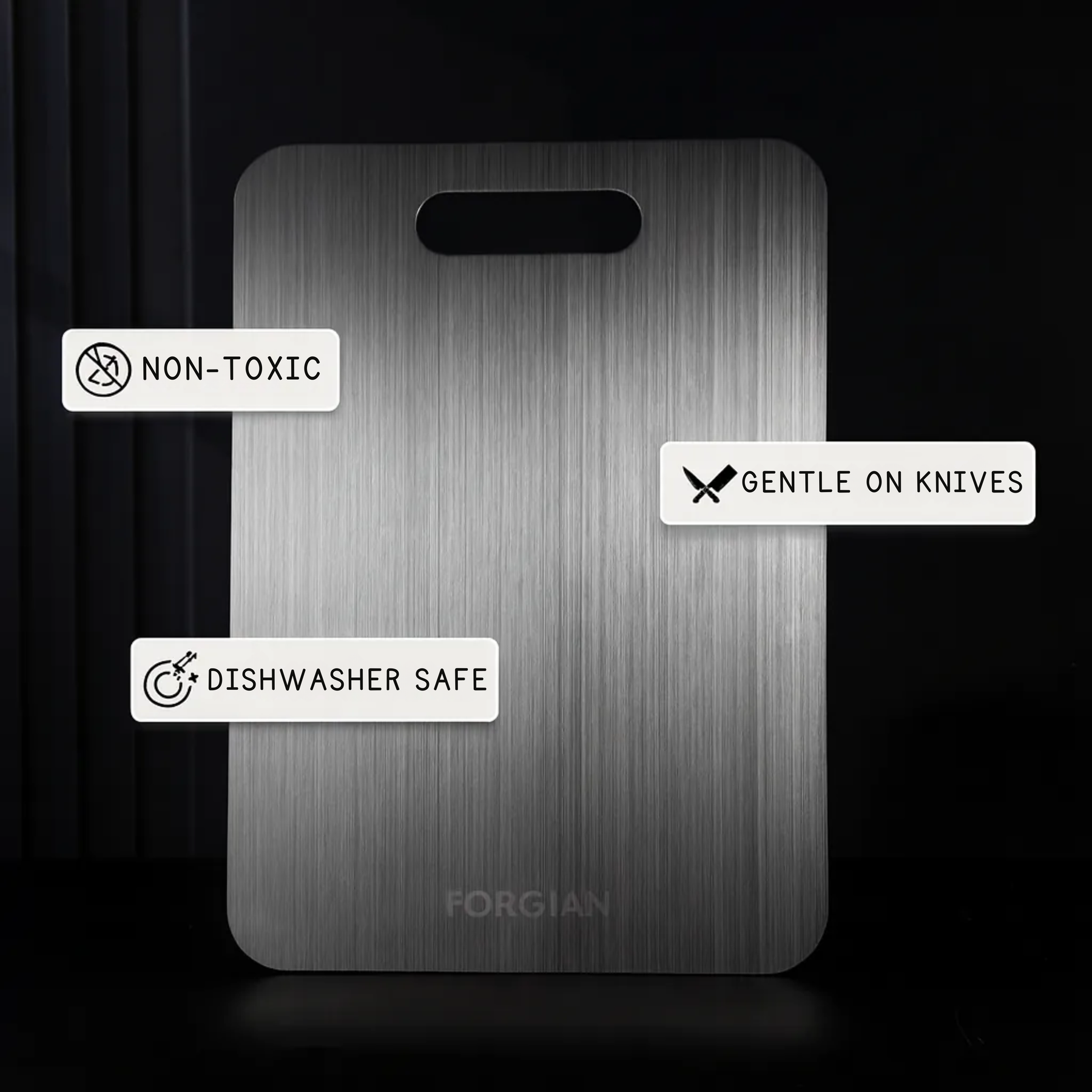 Our cutting boards are made from 100% pure titanium. It offers exceptional durability and is scratch and stain-resistant. Unlike other wooden or plastic cutting boards, it does not absorb odors or bacteria, making it a safer and healthier option for your kitchen.
